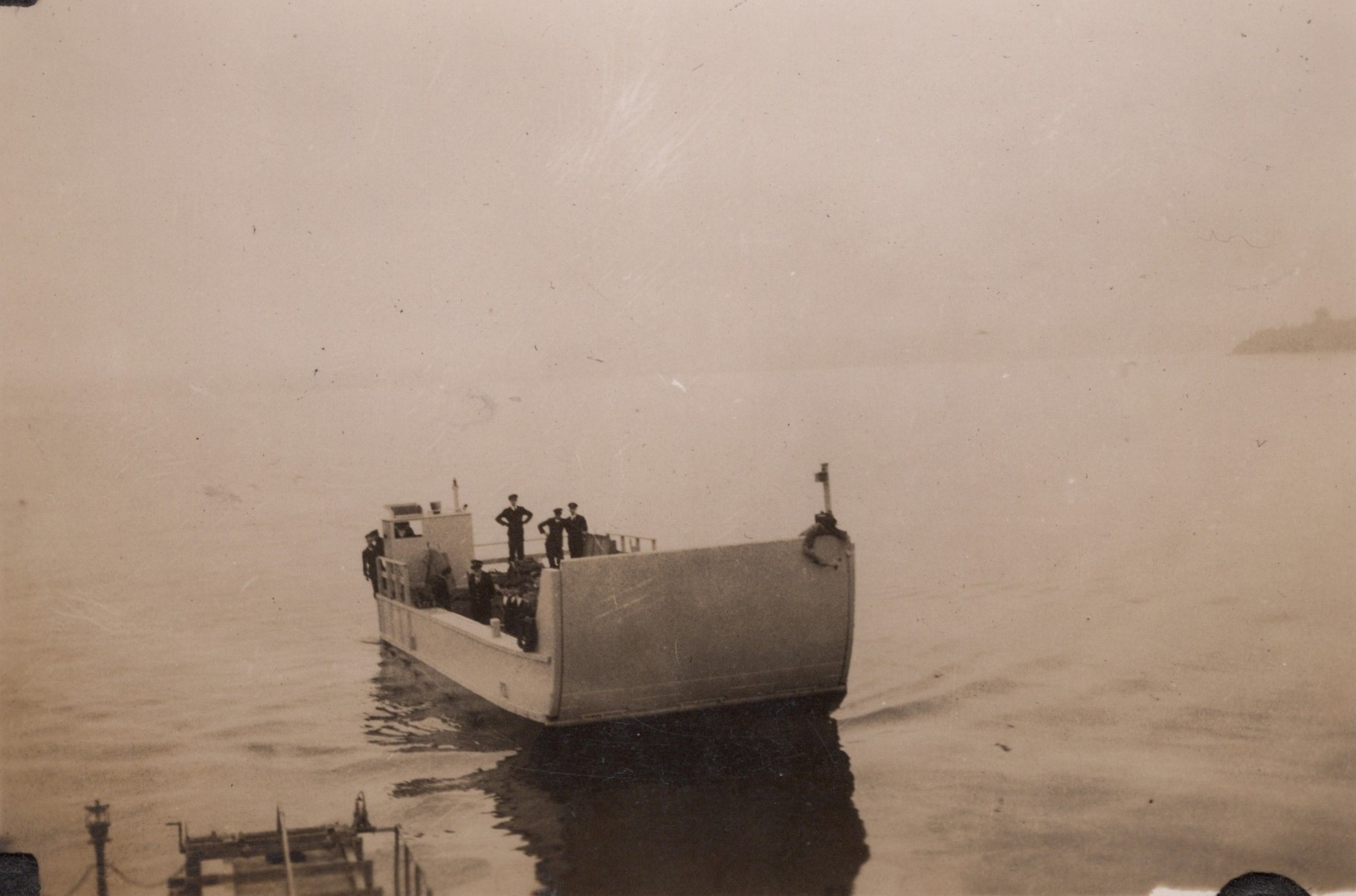 (JNC059) Harbour Craft NO. 33 passing near HMCS HAMILTON I24 (JNC060 - JNC061) Small landing craft approaching HMCS HAMILTON I24 - likely carrying personnel returning to ship