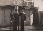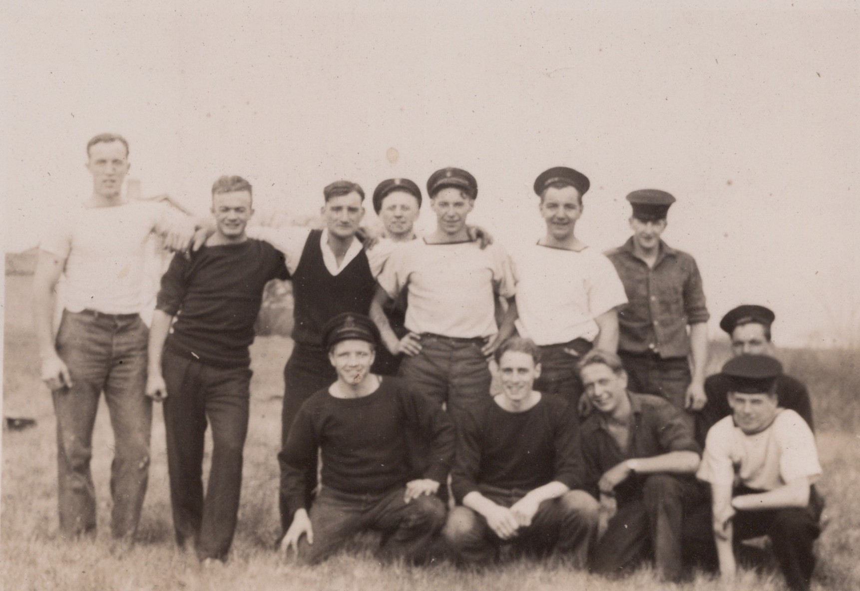 (JNC085 - JNC086) Sailors ashore at an unknown location. It is not known if they are off HMCS HAMILTON I24 or HMCS BITTERSWEET K182 From the collection of James Cox, Acting Stoker Petty Officer, RCNVR Courtesy of Evan Rogers