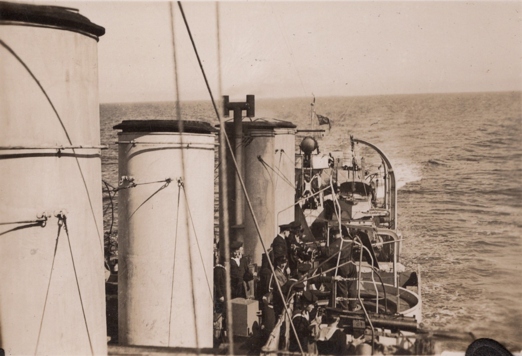 (RM54) Looking down from the crow's nest to the bridge of HMCS Hamilton I24 (RM55) Port side by the search light platform, looking aft to the after gun platform on HMCS Hamilton I24 (RM56) Wilson McMurdo on the fo'c's'le of HMCS Hamilton I24 (RM57) Looking port side aft from the boat deck towards the searchlight platform on HMCS Hamilton I24
