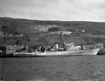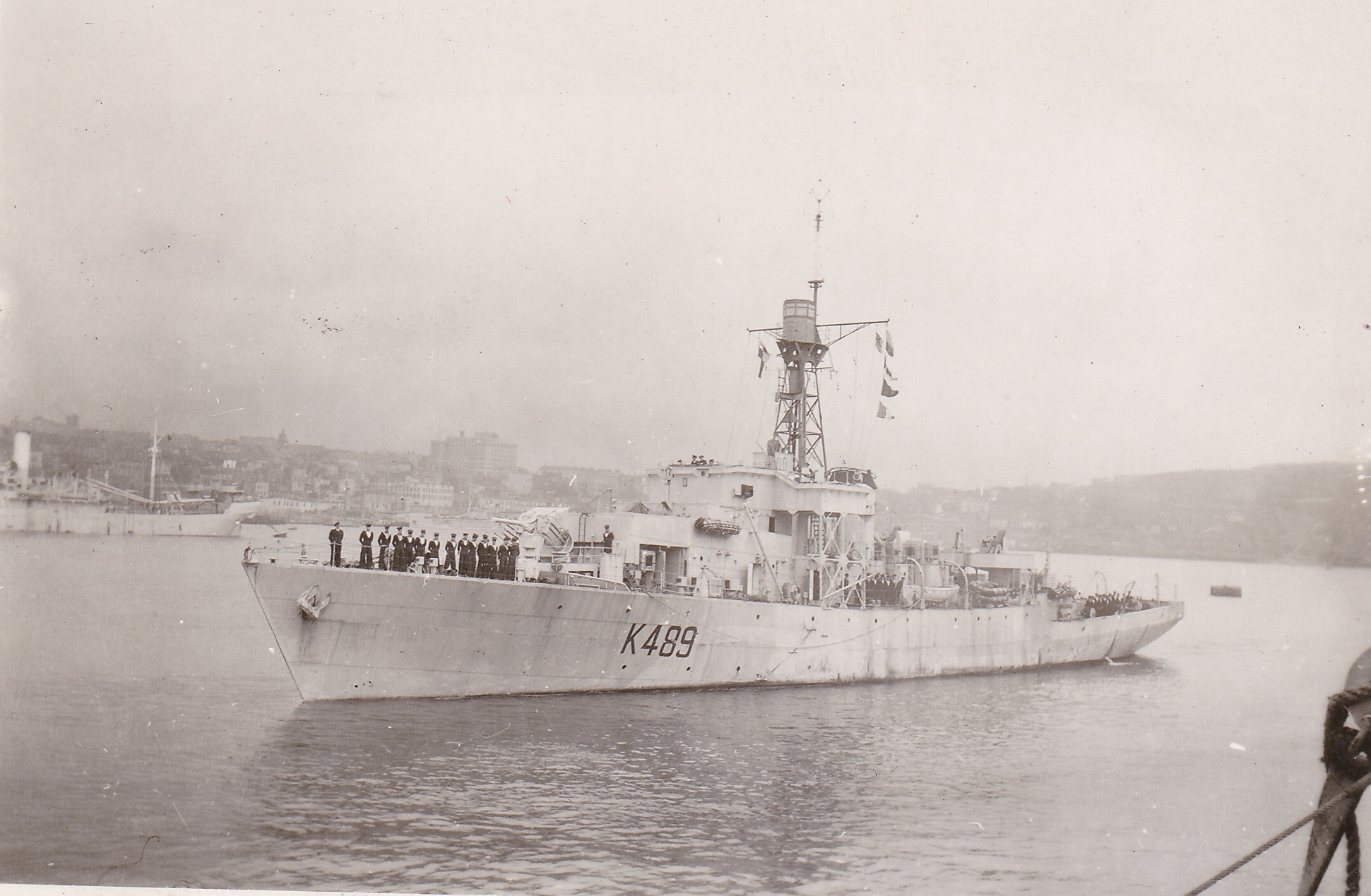Built at Leith, Scotland, she was laid down and launched as HMS Guildford Castle K378. On completion, she was transferred to the RCN and commissioned on 28 Feb 1944 as HMCS HESPELER K489 at Leith. Following workups at Tobermory she arrived at Londonderry in April to become a member of EG C-5. HESPELER sailed on 21 Apr 1944 to meet her first convoy, ONS.233, and for the next 11 months was employed as an ocean escort. On 23 Jul 1944, she left St. John's with EG C-5 to escort the largest convoy of the war, HXS.300. She left 'Derry for the last time on 08 Mar 1945, to escort ON.289 westward, and upon arriving at Halifax began a refit, completing it at Liverpool, N.S., in Jul 1945. She then sailed for the west coast and on 15 Nov 1945 was paid off into reserve at Esquimalt.
