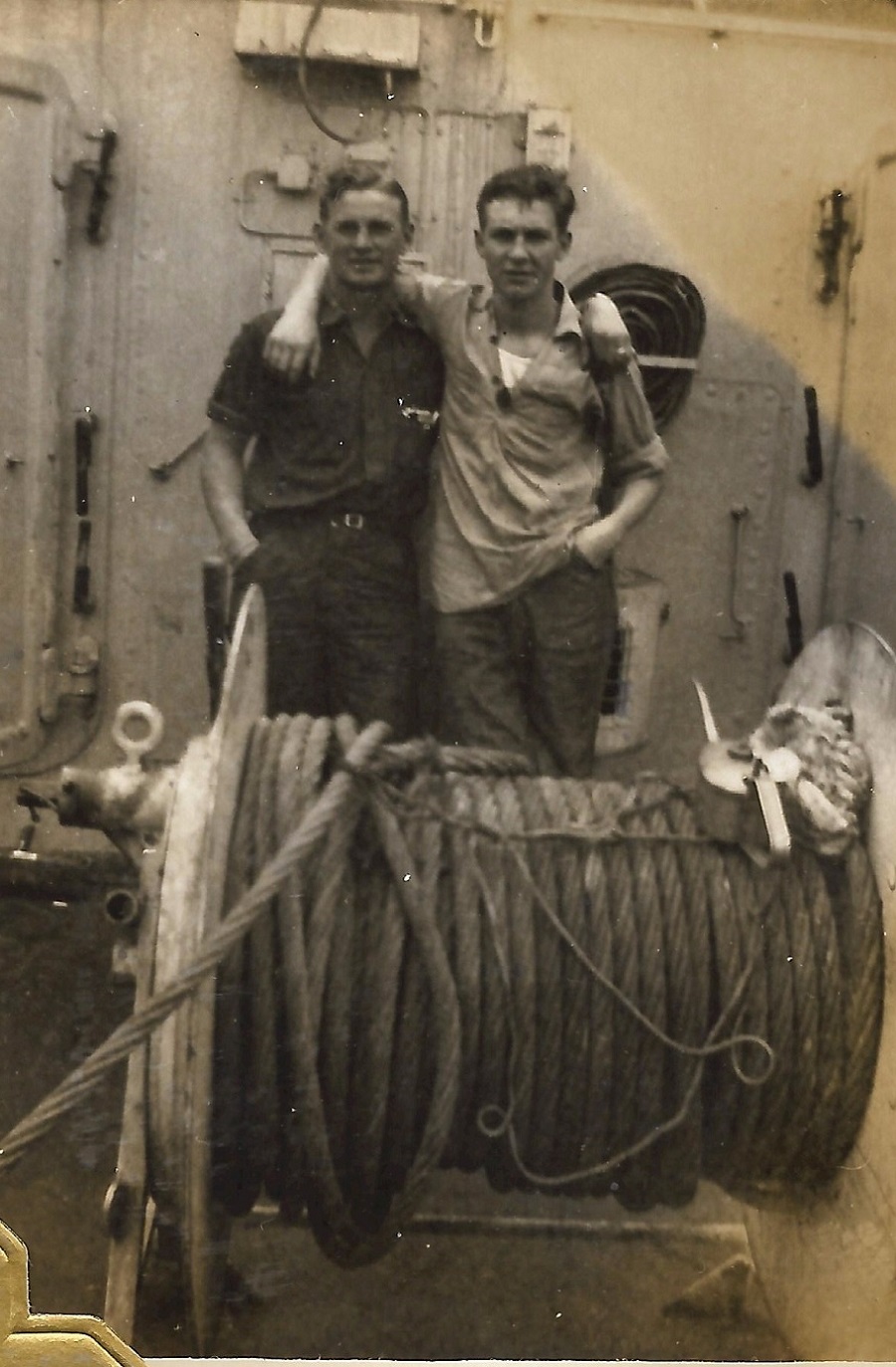 (RH03) Empire class MAC (Merchant Aircraft Carrier) (RH04-RH07) Rad and pals on HMCS HESPELER K489 (RH07) "Buddies, HMCS HESPELER, 1944"