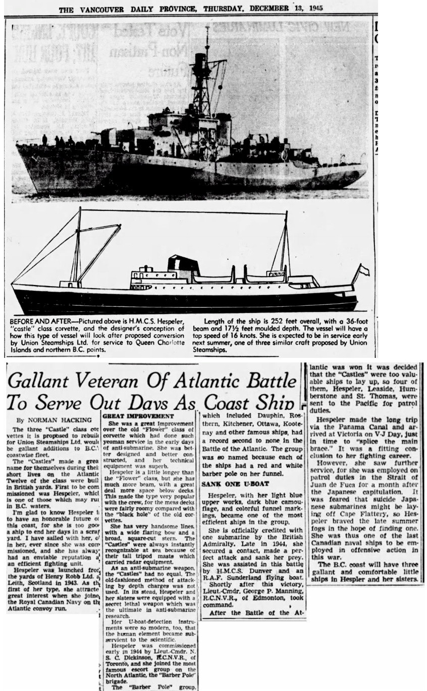 Article from the Vancouver Daily Province, Thursday, 13 Dec 1945