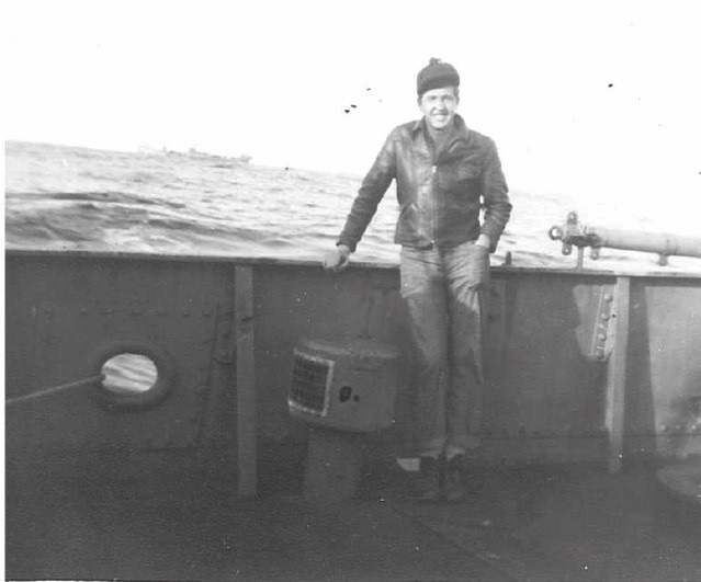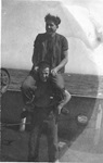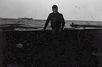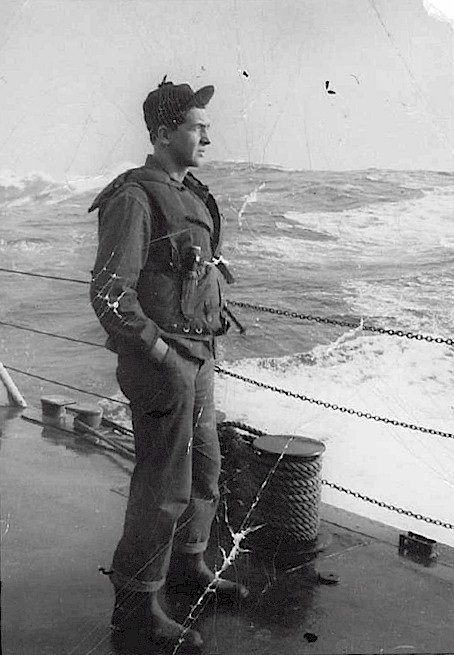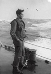 (KM03) Bob Enright on HMCS HESPELER K489 Written on the back of this photos is "Bob Enright, killed June 2/44"