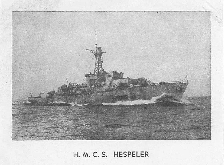 Webmaster's note: According to casualty records, HMCS HESPELER had no casualties (deaths) during her service career. Additionally, there is no record of a Bob (or Robert) Enright killed in the RCN during WW2. The only 2 Canadian (or Newfoundland) casualties during WW2 named Enright were both in the Army - one died on 07 Jun 1944 and the other on 31 Jun 1944 ashore in Europe. Royal Navy casualty records for WW2 only list one person named Enright, and she was a Wren, killed in an accident.