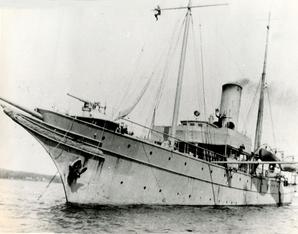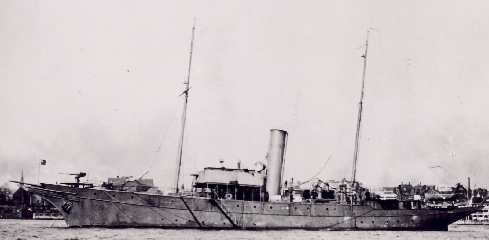An armed yacht formerly named Waturus, HOCHELAGA was purchased in the U.S. in 1914. She served as a patrol vessel from 13 Aug 1915 to 1920, and from then until 1923 took up coastguard duties. On 25 Aug 1918, HMCS HOCHELAGA ex-Waturus sighted U-156 on the surface off Halifax, but instead of attacking, in accordance with standing orders, retired towards the rest of her patrol group for 'support'. The submarine submerged & was not re-located. HMCS HOCHELAGA's Commanding Officer was later court-martialled & dismissed from service. This was the only occasion during WW I that the RCN encountered a German U-boat. After WW I, she spend many years as a Pictou-Charlottetown ferry and was sold in 1942, to reappear briefly four years later when she was seized by the RN as an illegal Israeli immigrant ship.
