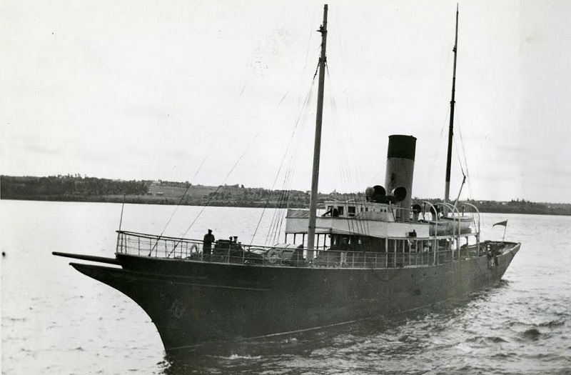 Surplus to needs at the end of the war she was paid off to reserve fleet early in 1919 but was re-commissioned in July of that year in connection with the arrival of the Prince of Wales in Quebec and a cruise by the Governor General in the St. Lawrence and Saguenay Rivers. The ceremonial duties ended in October when she received orders to board two inspectors of the Government Radio Service (operated at the time by the Naval Service). She visited wireless stations along the St. Lawrence and the North Shore where equipment was inspected and supplies landed. She reached Halifax in early November 1919. During that winter along with trawler HMCS Arras the HOCHELAGA was employed clearing ice from harbours such as Shelburne and Sheet Harbour. In January 1920 she was based in Canso to “assist fishermen off that port in case of distress” a role that the Canadian Coast Guard was later to play but at the time was one of the additional duties of the navy.