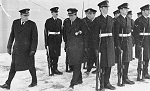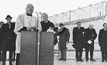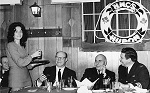 (HG101) commissioning Dinner at Auberge de la Rive, Sorel, Dec 1972. Seated, L-R: Capt J. Allan, Program Manager DDH 280, Cdr T. A. Arnott (CO CFTSD, Sorel), Cdr R.I. (Dick) Hitesman (CO). The name of the young lady is not known. (HG102-HG103) Commissioning of HMCS HURON 14 Dec 1972, VAdm D.A. Collins (NTS NDHQ) presiding. Also with RAdm R.W. Timbrell (CMC) on a day trip from Halifax in the command Dakota, making space available in the aircraft for HURON family members who could make the trip to join the ceremony.