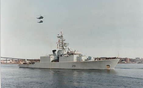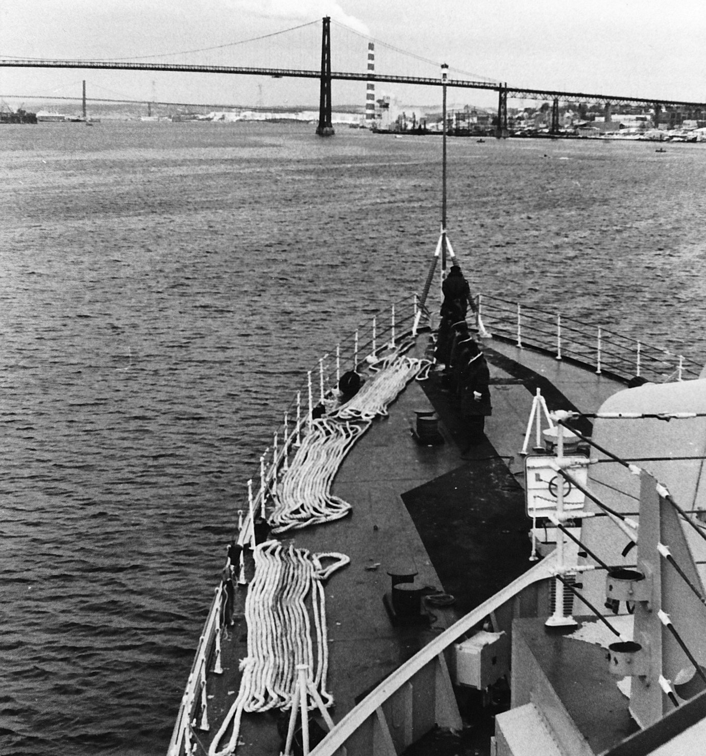 Commissioning divisions were short and cold, -20 with a strong north wind. When we came down the river we needed ice breaker assistance to get by Quebec City. Also the supply sys failed the ship in that we were not issued modern weather jackets, believe it or not they were from WW2. When we entered Halifax they played Snow bird over the upper deck speakers.