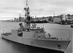 1974 was a whole new ball game, we sailed Jan 1974 for down south for exercises with the USN, returning to slackers mid-Mar 1974. Early Apr 1974 we sailed for the Mediterranean with IROQUOIS and PRESERVER. This is when the Lisbon thing happened (The Portuguese Revolution). After Lisbon we exercised with the USN Med Fleet off the southern tip of Italy. Ports were Naples and Barcelona, returning to Halifax mid-Jun 1974. In mid-Jul 1974 HURON sailed for NATO - the first 280 on that deployment until mid-Dec 1974. In early 1975, we sailed to carry out missile firings off Roosevelt Roads, PR (aka Roosey Roads). This involved tracking trials using the CF9. Because of there limited fuel range they would have had to fly over Cuba. We could not get the over flight clearance we had to work out of Key West for three weeks. For the rest of the year did Ex SAFE PASS and a refit. We sailed in early Jan 1976 for WUPS and exercises out of Roosey Roads. Did another Ex SAFE PASS from Mayport, Florida up the coast ending just off Halifax. HURON sailed for second NATO early Jul 1976. While in Kiel, HURON'S crew conducted a 3-week self-maintenance routine. On sailing from Kiel, the NATO SQN was transiting the Kattegat at night at high speeds. The NATO SQN had been dispatched to intercept the Russian air craft carrier Kiev that had broken out of the Black Sea and the Med with her escorts and was heading north. At that time she was one of Russia's latest and newest. During the transit, we (they believe) ran over a shoal, tore off the under water telephone and took 2 or 3 large chunks off the props. I had just finished Petty Officer of the Watch for the first watch and had just got my head down when we hit what ever it was. The noise below deck was terrifyingly loud. Immediately every one was dressed and running to emergency stations, but no pipe was ever made so we all kind of milled around expecting some sort of answer to what had just happened, heard nothing so everyone resumed the horizontal. Sometime before we entered Oslo for a port visit, the sonar world reported something wrong with the underwater telephone. Divers were sent down in harbour, Joe Arsenault was one of them, he was a WU, and when they surfaced he said "what telephone?" That's when they carried out a full bottom search and found chunks missing from the props. They Navigation Officer was the OOW when it happened. A board of inquire was held on run to slackers and he wore it all. As often happens during episodes like this rumours abound. The best one was we hit a small East German sub (there were many operating in these areas). As the story goes we hit the subs sail with the section of the hull around the underwater telephone knocking it over and when it was back up right we hit it again with the screws. The supposed shoal we hit, if you looked at the chart, was really hard to see and was extremely small. HURON had to leave the SQN early and return Halifax for repairs. Admiral Boyle was pissed of that we had sustained damage and couldn't finish NATO; he tied HURON up along Halifax for approx 6 weeks before allowing us to be repaired. Early 77 I was drafted ashore to CSD as 5"54 instructor. (submitted by James Ron Anderson, CPO, RCN)