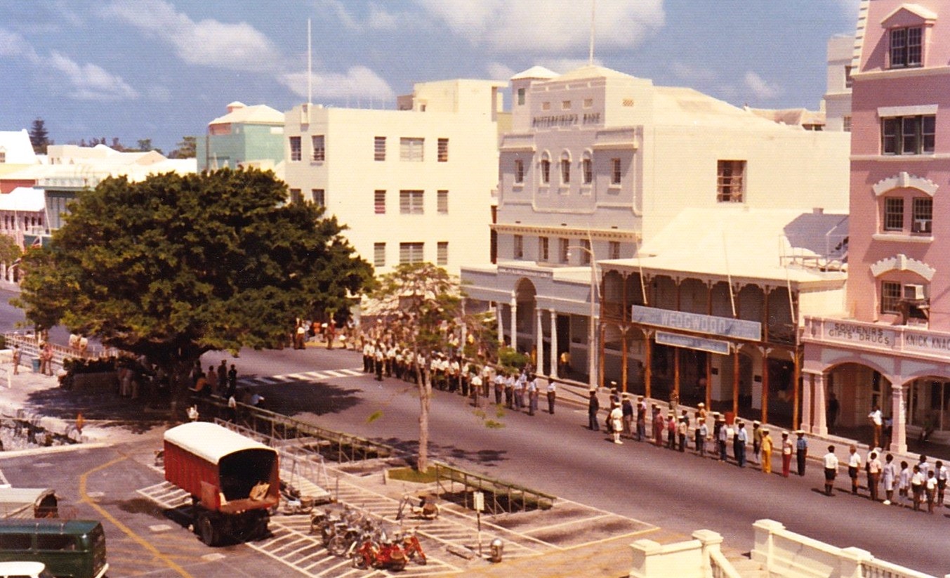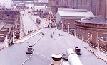 (HG120) HMCS HURON 281 alongside Bermuda during Work-ups 02-04 Jun 1973 (HG121) HMCS HURON 281 open to visitors while in Bermuda - crowds lined up in the street.