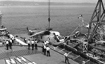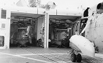 (HG122-HG125) HMCS HURON 281 Helo trials 13-17 Jun 1973 (HG123) A full deck - 16 Jul 1973. A unique photo of 2 birds in the hangar and once secured on deck