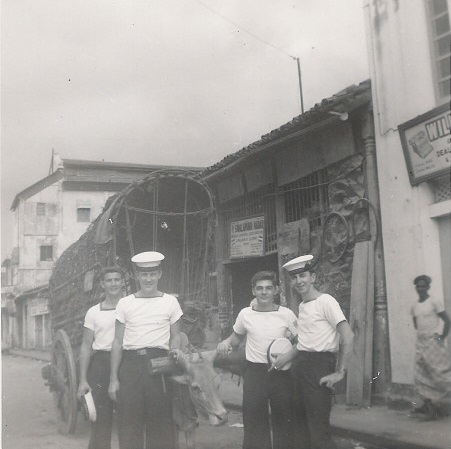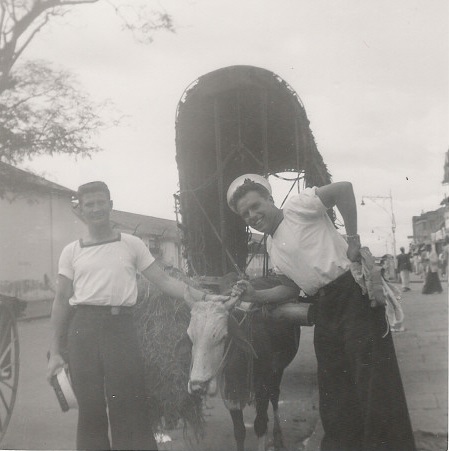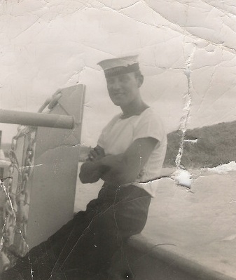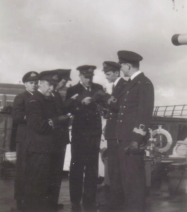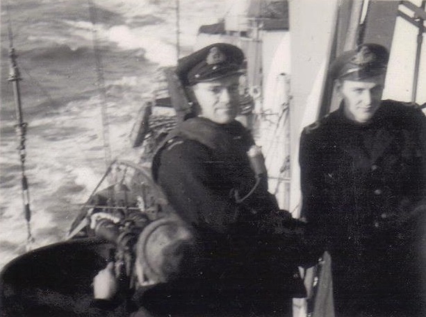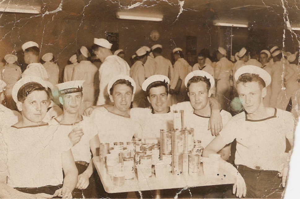 HMCS HURON 216 sailors ashore - location unknown (EA25) Earle Anderson on right (EA27) Earle Anderson onboard HMCS HURON 216