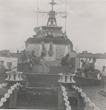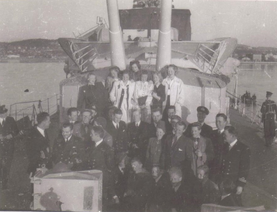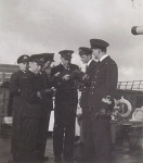 (OSA006) Surg-Lt Orchard on HMCS HURON (OSA007) Surg-Lt Orchard (left) with unknown officer on HMCS HURON (OSA008) Unknown officers n HMCS HURON (OSA009) Officers of HMCS HURON with their guest on the fo'c's'le of HMCS HURON (OSA010) Unknown officers on HMCS HURON