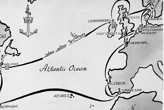 On 23 Aug 1950 The Canadian Special Service Squadron, consisting of the MAGNIFICENT, HURON and MICMAC sailed from Halifax for a three-moth training cruise to Europe. The Canadian Special Service Squadron arrived at Londonderry on 01 Sep 1950. For the next two weeks the ships carried out an intensive anti-submarine training program. From 'Derry they went to Rosyth, Scotland, and then to Oslo, Norway. Ships of the Special Service Squadron called at seven ports - Gothenburg, Copenhagen, Amsterdam, Rotterdam, Antwerp, Portsmouth and Cherbourg - within 22 Days. The Special Service Squadron completed the continental phase of its training cruise with visits to Lisbon and Gibraltar. Following a strenuous exercise period with the British Home Fleet, the ships sailed westward for Bermuda. There the MAGNIFICENT, HURON and MICMAC were joined by the frigates LA HULLOSIE and SWANSEA and the five ships arrived at Halifax on 27 Nov 1950.