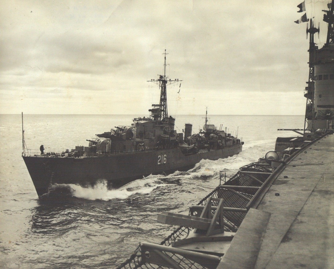 She was re-commissioned at Halifax for training purposed in 1950, but sailed on 22 Jan 1951 on the first of three tours of duty in Korean waters. Following her Korean tours, she returned to her training role.