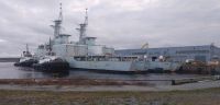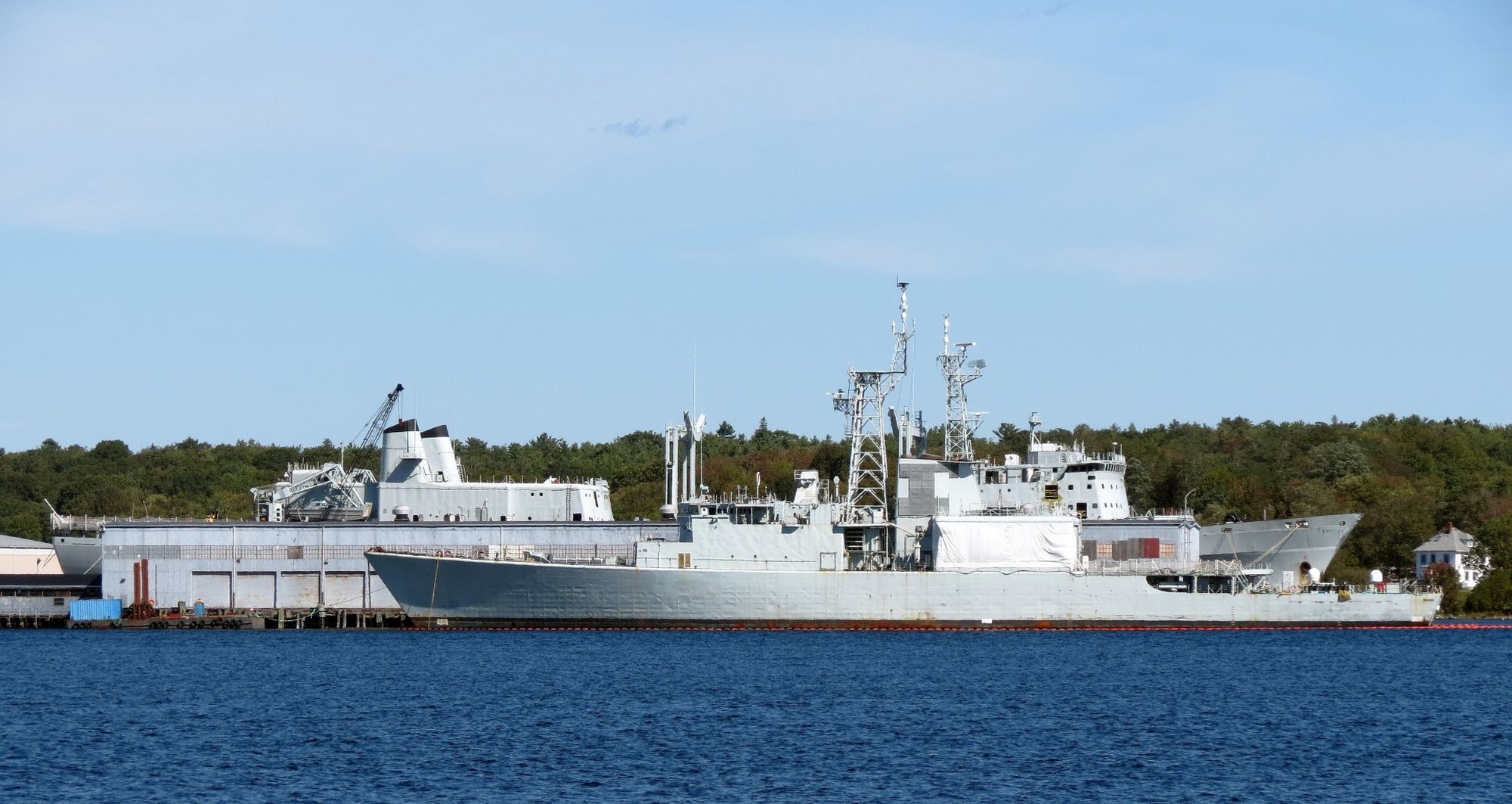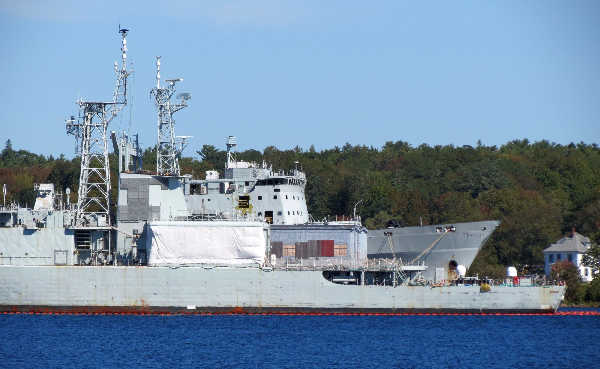 (IRO208 - IRO211) The former HMCS IROQUOIS 280 with the former HMCS PROTECTEUR 509 in the background at Liverpool, NS awaing the breaker's hammer - 22 Sep 2016 // Courtesy of Daniel Little