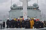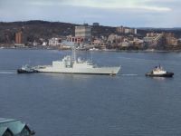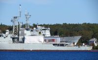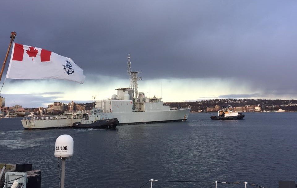 On 17 Oct 2001, with CHARLOTTETOWN and PRESERVER, IROQUOIS departed Halifax for the Arabian Sea to support a U.S.- led coalition against international terrorism. Returning to Halifax on 27 Apr 2002, in the course of that 193-day deployment, she spent 171 days at sea, 51 of them consecutively, one of the longest continuous patrols in the history of the RCN. Soon after departing Halifax for a second deployment to the Arabian Sea, on 27 Feb 2003 she suffered a Sea King crash on deck, fortunately without serious injuries. Upon arriving in the Arabian Sea, she served as the flagship of the multi-national Task Force 151 from Mar to July 2003. She made a third deployment to the Arabian Sea as flagship of the multi-national Task Force 150, Jun-Sep 2008. In her last years of service, she performed two major representational voyages: to Baltimore MD in Jun 2012 for the War of 1812 Bicentennial; and to Liverpool UK in May 2013 for the 70th anniversary commemoration of the Battle of the Atlantic. In 2014, it was found the rust had caused extensive damage to her hull and she was laid up alongside Halifax - deemed not worth repairing. IROQUOIS was paid-off on 01 May 2015 at HMC Dockyard, Halifax. At 1600 on 24 Nov 2016, under tow from the tug Atlantic Spruce, the former HMCS IROQUOIS departed Halifax en route to Liverpool, NS and the breaker's yard.