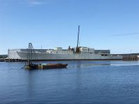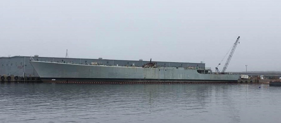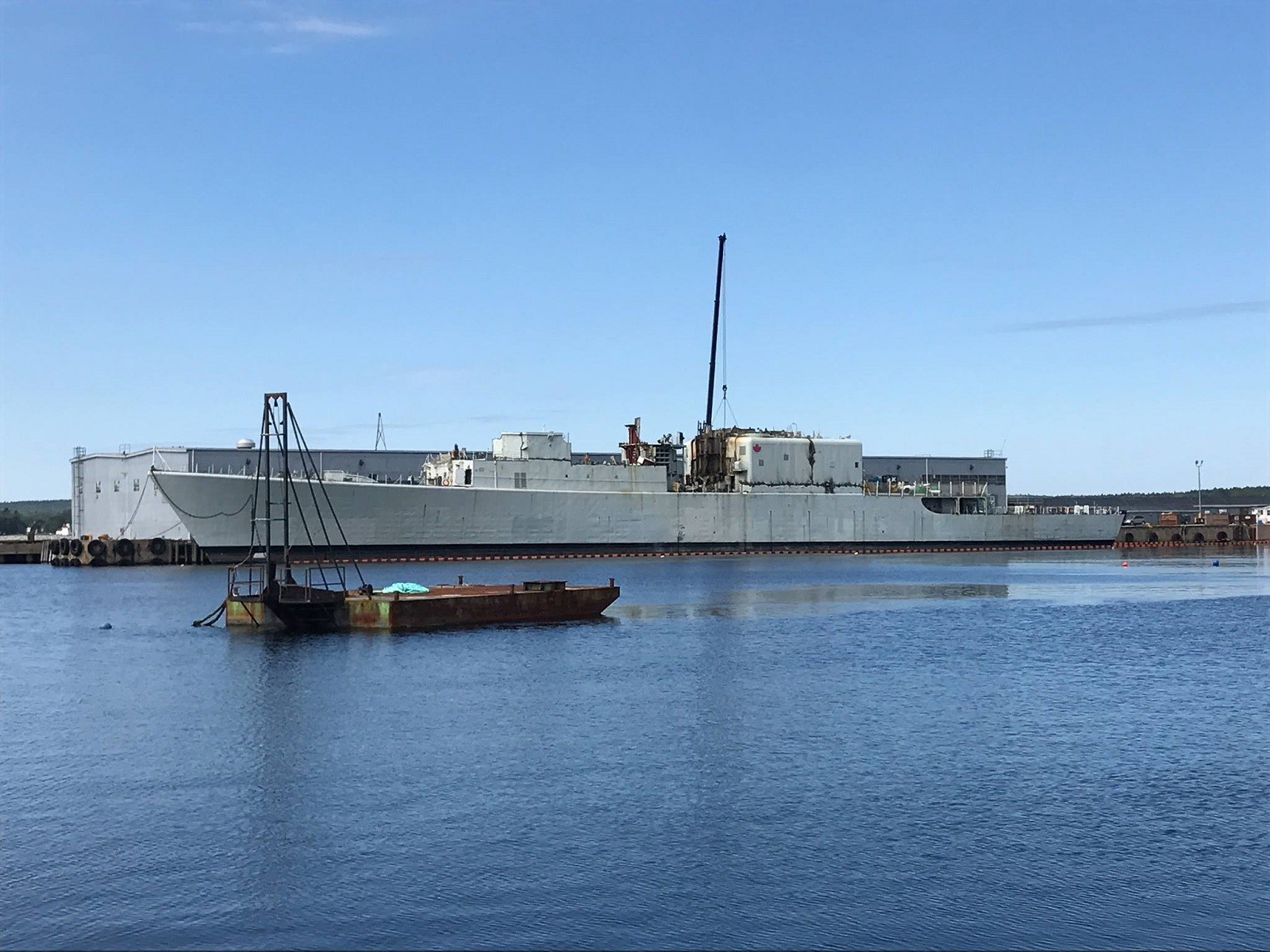 (IRO211) The breaking up of the former HMCS IROQUOIS 280 is underway at Liverpool, NS - 24 Aug 2017 (IRO212) The breaking up of the former HMCS IROQUOIS 280 at Liverpool, NS - 23 Sep 2017. The hull is all that remains after being stripped of her gun, bridge and hanger. // Courtesy of Jocelyn Josh Naud