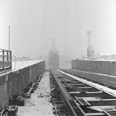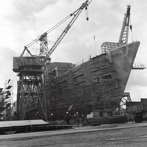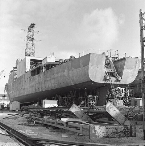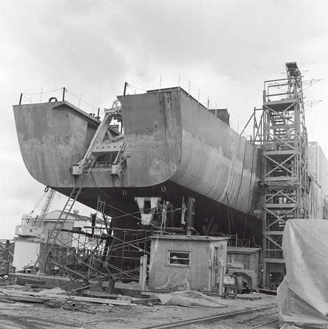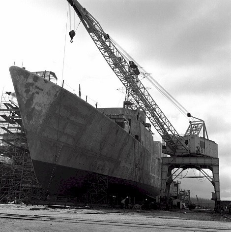 IRO001 (IRO001) HMCS IROQUOIS under construction at Sorel, Que, 21 Jan 1971 Courtesy of Mike England