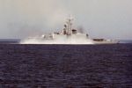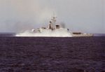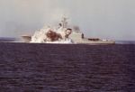(MC001 - MC004) Sequence of 4 photos showing an A/S mortar exploding astern of HMCS IROQUOIS 280 circa 1982-84