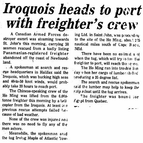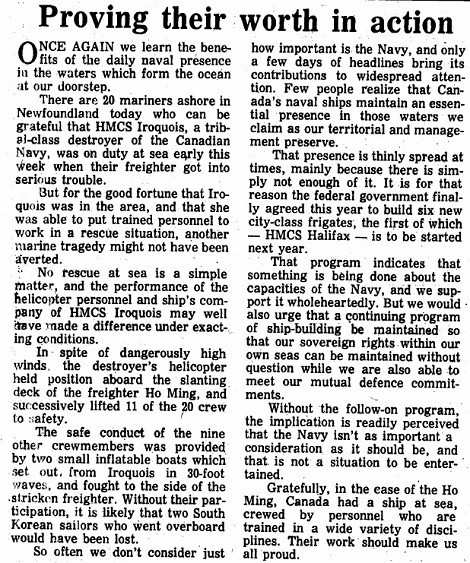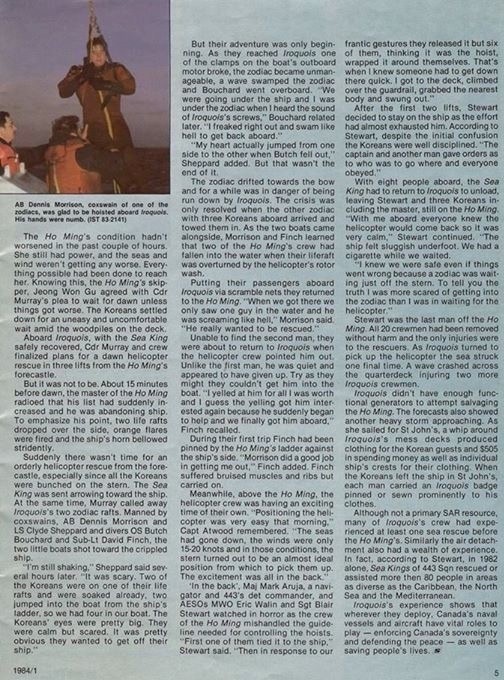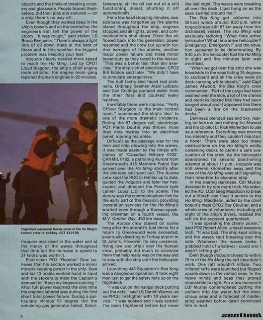 DM07 (DM07) Article from the SENTINEL magazine on the rescue of the Ho Ming 5's crew by HMCS IROQUOIS Courtesy of Dennis Morrison, Boatswain, C.A.F. (Navy)