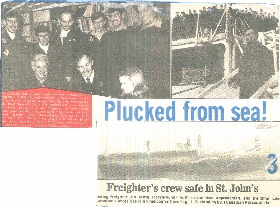 (DM02-DM06) Newspaper articles on the rescue of the Ho Ming 5 by HMCS IROQUOIS on 05 Dec 1983
