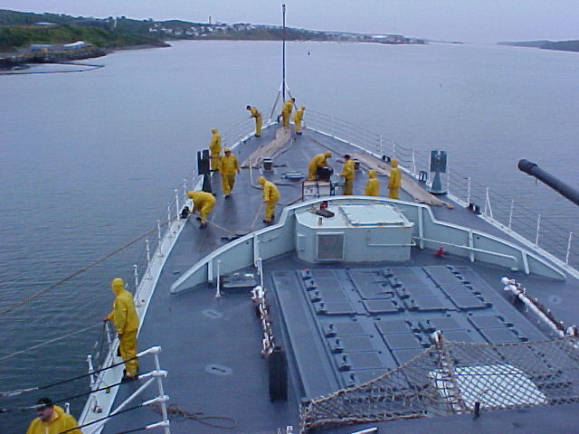 (JL01) IOL preparations on HMCS IROQUOIS 280 (JL02) Deck Department HMCS IROQUOIS with Buffer front and centre (JL03) Deck department HMCS IROQUOIS (JL04) Deck dept. and FX part ship hands prepare HMCS IROQUOIS to be taken in tow by HMCS Charlottetown 339 (JL05) A few crew members of HMCS IROQUOIS