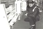 (IRO054 - IRO057) HMCS IROQUOIS crew members jigging cod at Virgin Rocks, Grand Banks, 1986 on the way home from a four month Standing Naval Force Atlantic deployment // Courtesy of John Newton, Rear-Admiral, RCN