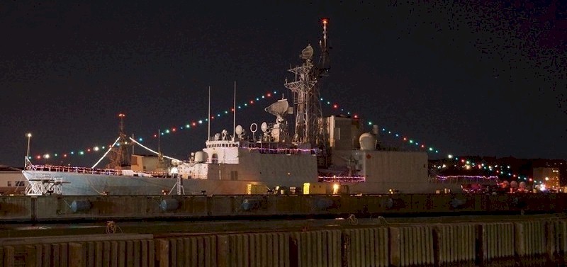 (IRO063) Article on HMCS IROQUOIS rescuing crew of the stricken Leader L. // March 25, 2000, The Associated Press (IRO064) HMCS IROQUOIS 280 departing St. John's, Newfoundland - 2010 // Photographer: Gary Morgan (IRO065) HMCS IROQUOIS lit up for Christmas 2013 (IRO066) HMCS IROQUOIS - date unknown (IRO067) Waterspouts in the Mediterranean. Seen from HMCS IROQUOIS // Courtesy of Stevan Ellis Hulan