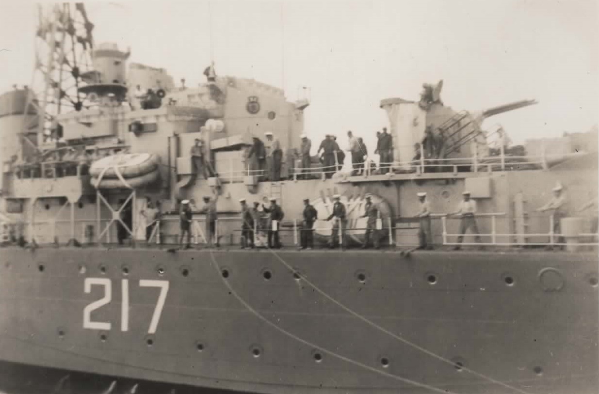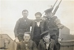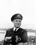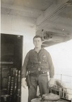 (RD16) Lt Madgwick on HMCS IROQUOIS G89 (RD17) Sailors on HMCS IROQUOIS G89 Russell Dewe, back, 1st on left - Eric Snell, back, centre. Two of other sailors in the photo are B. Evasik and Robert Willis though it is not known which sailors they are in the photo (RD18) Russell Dewe on HMCS IROQUOIS G89 (RD19) Russell Dewe (centre) other two sailors unknown on HMCS IROQUOIS G89 (RD20) Unknown sailor on HMCS IROQUOIS G89