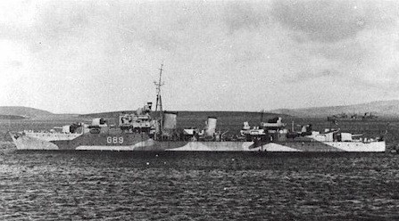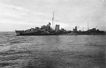 The first of the Canadian Tribals to commission, she did so at Newcastle-on-Tyne, on 30 Nov 1942. IROQUOIS was assigned to the 3rd Flotilla, Home Fleet, but proved to have structural flaws and was not fully operational until 30 Jan 1943. On a quick round trip to Canada in Mar 1943 she incurred weather damage that kept her under repairs at Plymouth until early Jun 1943, following which she was employed on Gibraltar convoys. In Jul 1943 three troopships she was escorting to Freetown were attacked by German aircraft 300 miles off Vigo, Spain, and two were sunk, IROQUOIS rescuing 680 survivors from the Duchess of York. IROQUOIS then spent several months escorting Russian convoys. In Feb 1944, she arrived at Halifax for a refit, returning to Plymouth early in Jun 1944 to join the 10th Flotilla for invasion duties. After D-Day she carried out patrols in the Channel and the Bay of Biscay, and for some months escorted capital ships and troopships in U.K. coastal waters. She rejoined the Home Fleet at Scapa Flow in Mar 1945. On 16 Apr 1945, HMCS HAIDA G63, HMCS HURON G24 and HMCS IROQUOIS G89 departed Clyde with convoy JW.66 for Kola Inlet; arriving at Kola Inlet on 25 Apr 1945. They departed Kola Inlet for Clyde with convoy RA.66 on 29 Apr 1945. On 29 Apr 1945 HMCS HAIDA G63 and HMCS IROQUOIS were G89 attacked by U-427 (Oblt Karl-Gabriel Graf von Gudenus). The attack resulted in near misses by U-427. They arrived at Clyde on 08 May 1945. Following D-Day, she sailed to Oslo as an escort to Crown Prince Olaf, who was returning to liberated Norway. Shortly afterward she visited Copenhagen, whence she escorted the German cruisers PRINZ EUGEN and NURNBERG to Kiel for their formal surrender. On 04 Jun 1945 she left Greenock with HAIDA and HURON, arriving at Halifax on 10 Jun 1945.