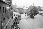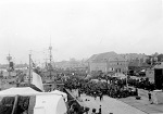 (RTL-LRB031) A large group of German Prisoners-of-War in Copenhagen, Denmark in May 1945. Photo taken by Lynford Boune while his ship HMCS IROQUOIS was in the city following the surrender of German forces (RTL-LRB032 - RTL-LRB035) PRINZ EUGEN, German Navy's Admiral Hipper class cruiser, surrendered at Copenhagen, Denmark in May 1945. Photos taken from HMCS IROQUOIS, who formed part of the Allied escort for the cruiser and the Leipzig class cruiser NURMBERG to Wilhelmshaven, Germany for their formal surrender to the Allies