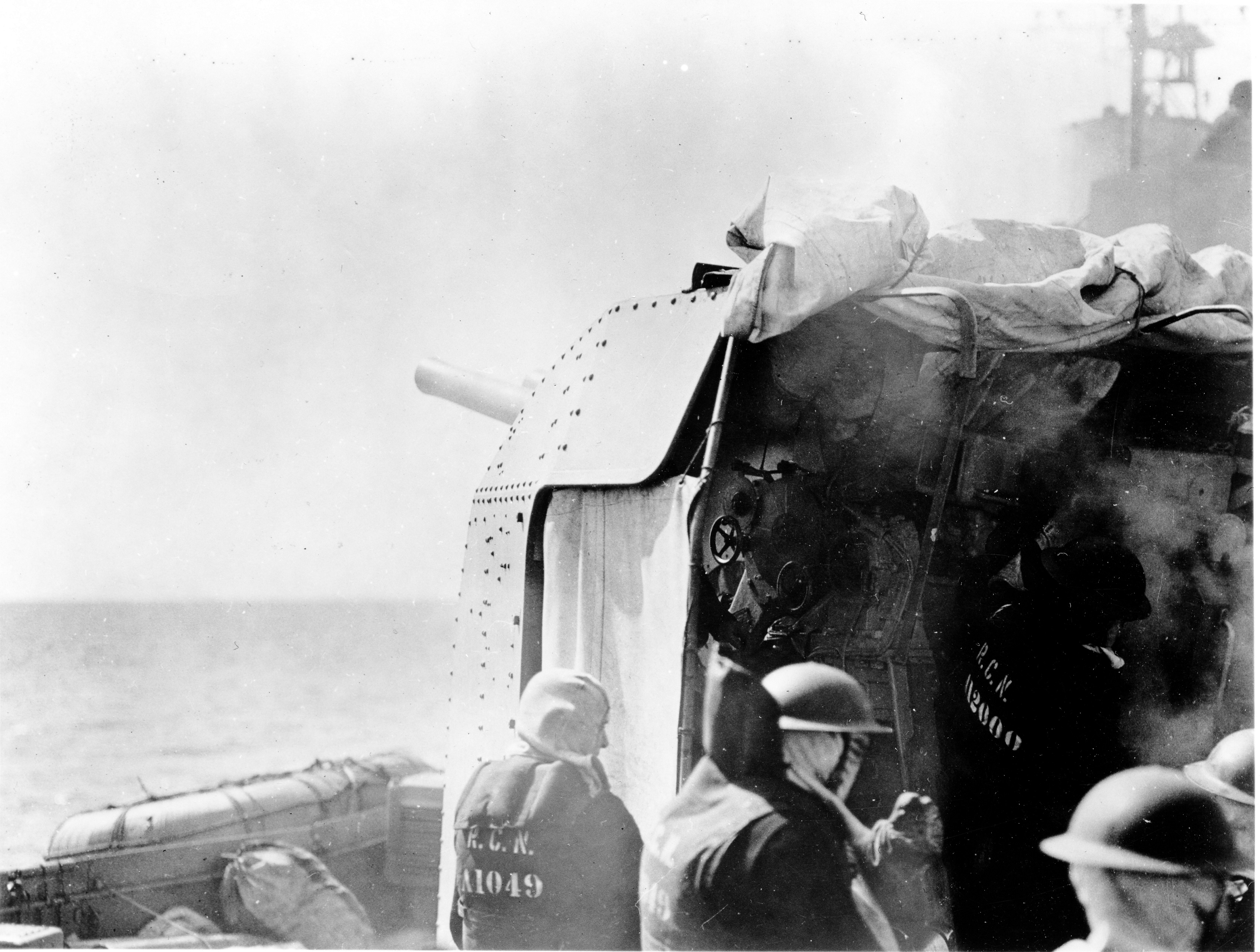 (RTL-LRB045) Unidentified sailors on HMCS IROQUOIS (RTL-LRB046) Sailors at their action stations on an AA gun taking a smoke break on HMCS IROQUOIS (RTL-LRB047) Crew of HMCS IROQUOIS at action stations (RTL-LRB048) HMCS IROQUOIS firing her 4.7-inch guns (RTL-LRB049) HMCS IROQUOIS firing her 4.7-inch guns