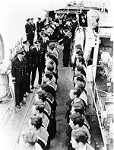 (AM19) Fo'c's'le of HMCS IROQUOIS - photo taken from by the bull ring (AM19a) HMCS MICMAC under repair after being rammed by SS Yarmouth County on 16 Jul 1947. Photo taken from HMCS IROQUOIS (AM20) Divisions on HMCS IROQUOIS