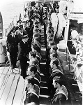 (RTL-LRB055) Sailors on HMCS IROQUOIS fallen in and being inspected (RTL-LRB056) Sailors on the quarterdeck of HMCS IROQUOIS (RTL-LRB057 - RTL-LRB059) Crew of HMCS IROQUOIS being inspected by unknown flag officer