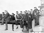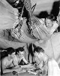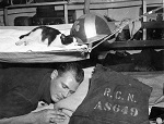 (RTL-LRB087) Cramped life in a mess deck on HMCS IROQUOIS (RTL-LRB088) L-R: A leading signalman, Leading Telegraphist, Lieutenant and Petty Officer posing with a radio on the bridge of HMCS IROQUOIS (RTL-LRB089) Stokers in the boiler room of HMCS IROQUOIS (RTL-090) Unknown Lt inspecting a delivery of some sort on HMCS IROQUOIS (RTL-091) Unknown sailors posing on the torpedo tubes of HMCS IROQUOIS