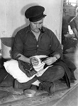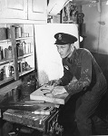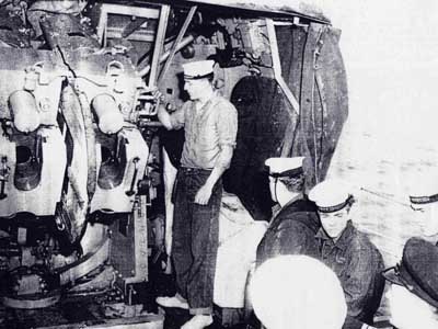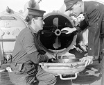 (RTL-LRB077) The ship's barber at work on HMCS IROQUOIS (RTL-LRB078) Inspecting a torpedo loading in one of the torpedo tubes on HMCS IROQUOIS (RTL-LRB079) Unknown CPO Shipwright at work on HMCS IROQUOIS (RTL-LRB080) Unknown sailor by AA mount on HMCS IROQUOIS holding a dummy wooden machine gun (RTL-LRB081) Unknown sailors on HMCS IROQUOIS posing with dummy wooden machine gun