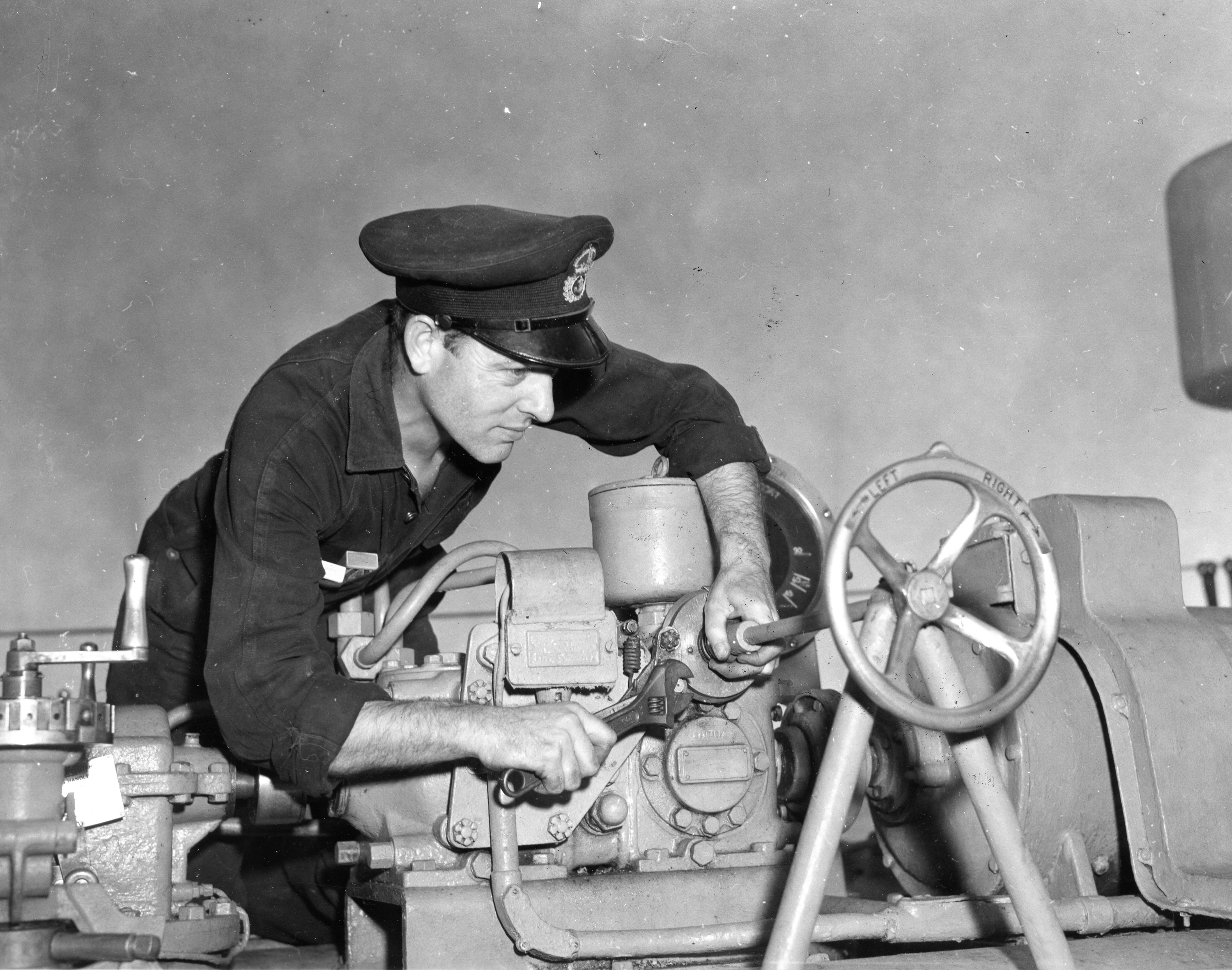 (RTL-LRB082) Unknown sailors on HMCS IROQUOIS posing with brooms (RTL-LRB083) Unknown Petty Officers in the boiler room of HMCS IROQUOIS (RTL-LRB084) Unknowns stokers in the boiler room of HMCS IROQUOIS (RTL-LRB085) Unknown sailor on HMCS IROQUOIS catching some sleep while the ship's mascot sleeps above in its own hammock (RTL-LRB086) Unknown Chief working on some equipment on HMCS IROQUOIS