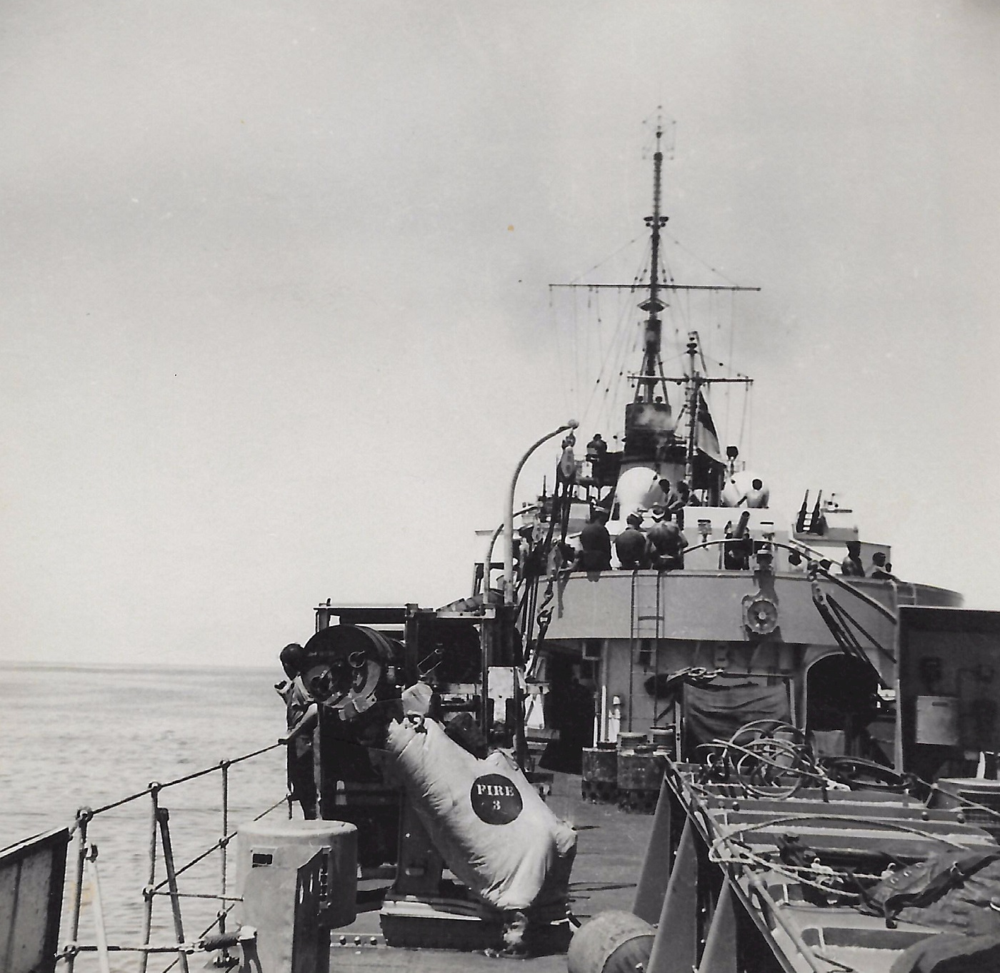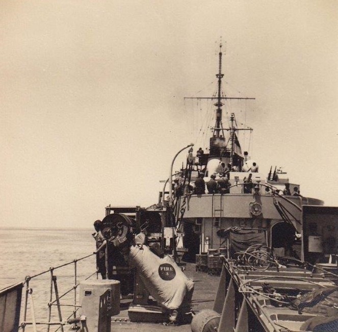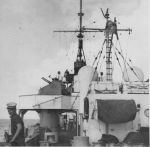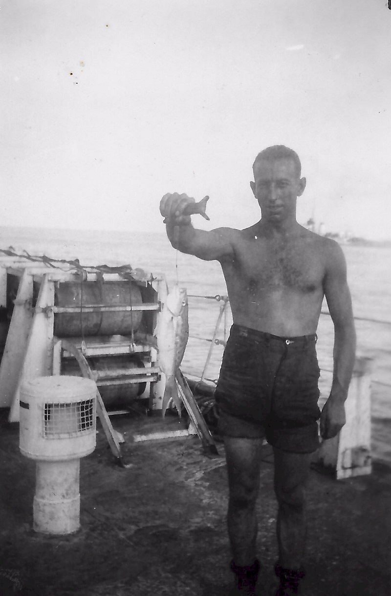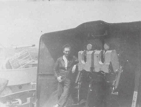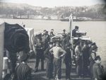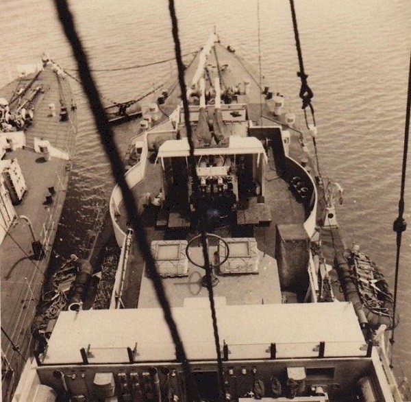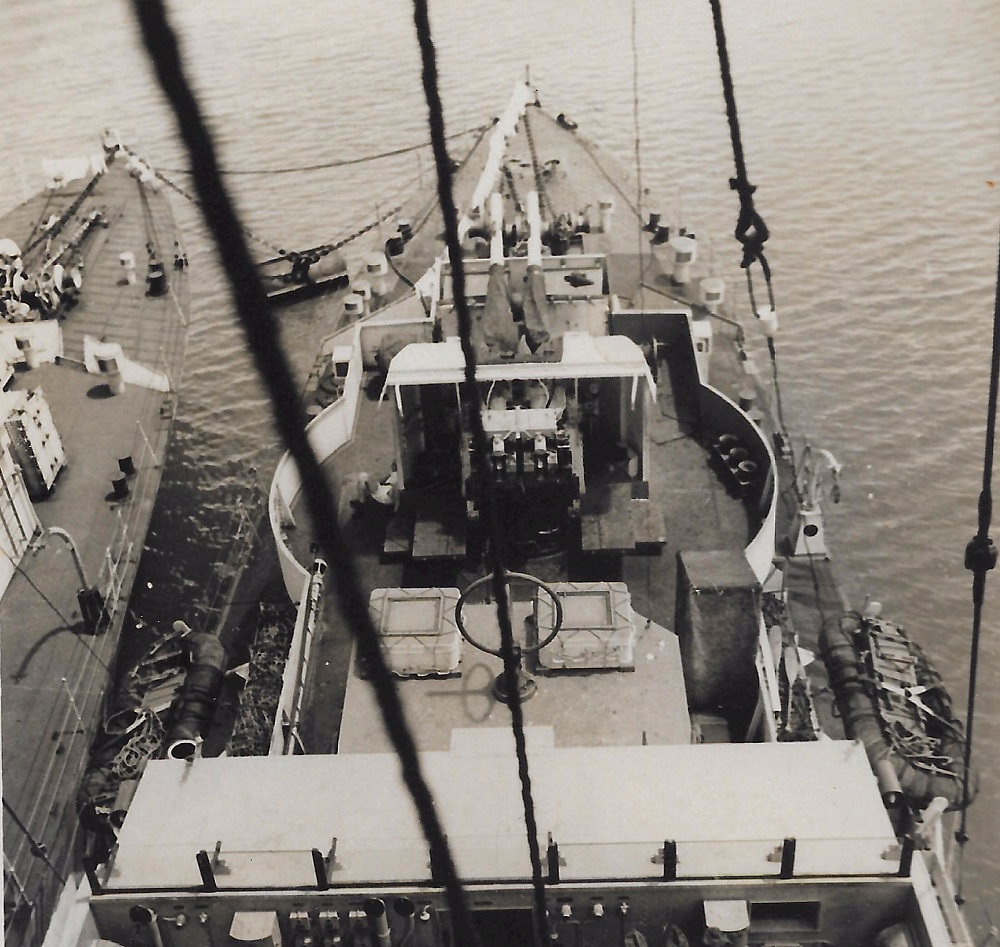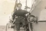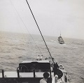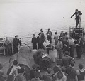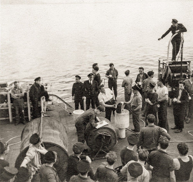 (GAO043) Manning the sea boat on HMCS JOLIETTE K418 (GAO044) Up Spirits on HMCS JOLIETTE K418 at Londonderry (GAO045) Jim Preal on the quarterdeck of HMCS JOLIETTE. Photo taken from the 12-pdr (GAO046) Looking at an oil tanker at Moville from HMCS JOLIETTE after VE-day - note the oil tanker is "dressed" (GAO047) A sub off Scotland