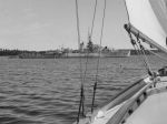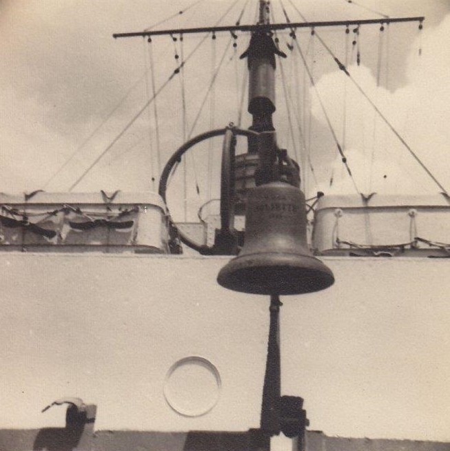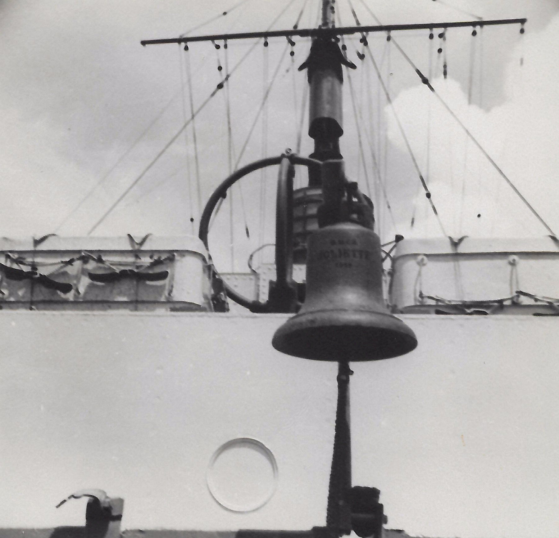 (GAO021) Looking forward from the Quarterdeck of HMCS JOLIETTE K418 (GAO022) Training sub at Tobie Moorie (Tobermory) Scotland as seen from HMCS JOLIETTE K418 (GAO023) Tobie Moorie (Tobermory) Scotland as seen from the after gun deck of HMCS JOLIETTE K418 (GAO024) Unknown cruiser in drydock, Belfast, Northern Ireland (GSO025) Ship's bell of HMCS JOLIETTE K418. Photo taken from the 4" gun