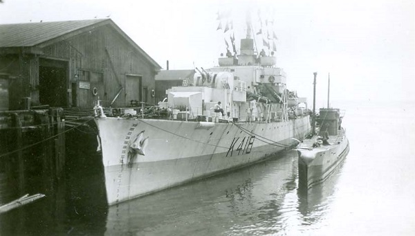 (RAH004)HMCS JOLIETTE K418 outboard ship at "D" Jetty, Halifax From the collection of Robert Arthur (Bob) Hanna, RCNVR Courtesy of Scott Hanna