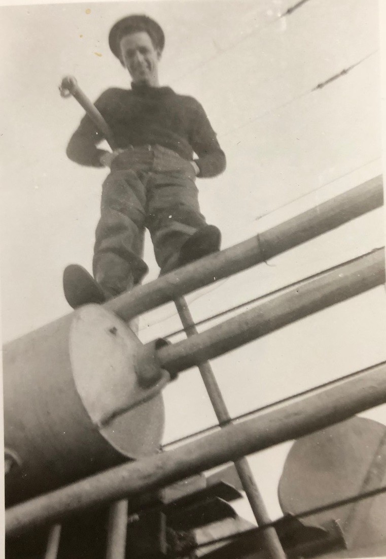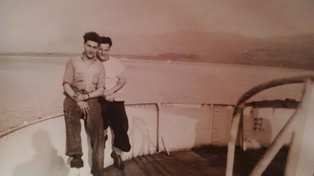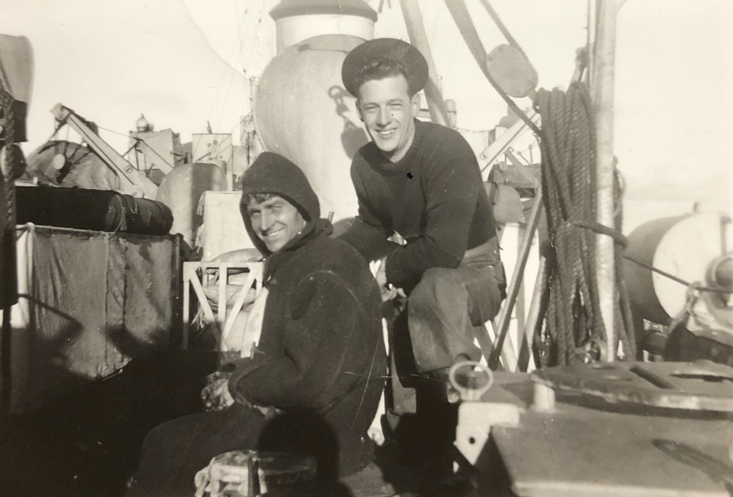 (AT001-AT004) Telegraphist Andrew (Andre) Tipson on HMCS JOLIETTE K418 (AT005) Telegraphist Andrew Tipson (right) and unknown shipmate on HMCS JOLIETTE K418