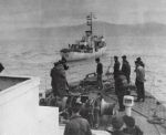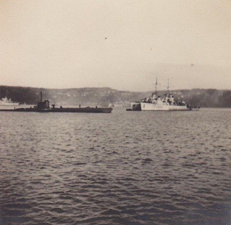 (GAO026) Tobie Moorie (Tobermory) as seen from HMCS JOLIETTE K418 (GAO027) Training sub off the coast of Scotland (GAO028) Our crew being towed back from the canoe race - we lost (GAO029) HMS BLACKSWAN seen from HMCS JOLIETTE K418 (GAO030) Allied sub off the coast of Scotland