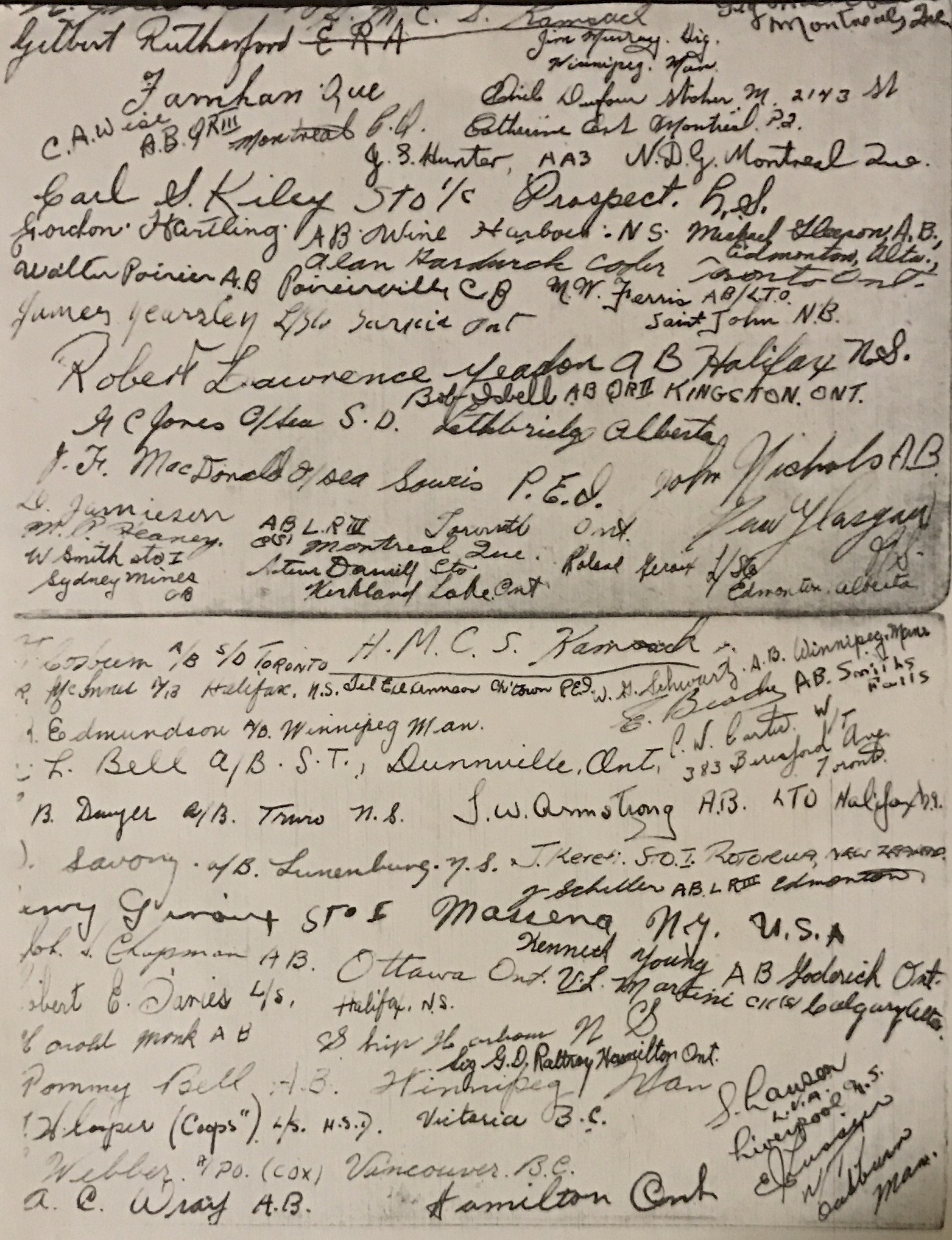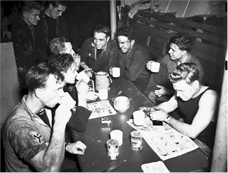 (KAM001) The launching of HMCS KAMSACK K171 // Source: Ken Macpherson / Naval Museum of Alberta / MC-2463 (KAM002) HMCS KAMSACK K171 // From the collection of Ivan Chamberlain // Courtesy of Dave Chamberlain (KAM003) HMCS KAMSACK K171 // From the collection of Alan E. Hardwick, Signalman, RCNVR // Courtesy of Jill Hardwick (KAM004) Signatures of KAMSACK crew members circa Oct 1941 - Jun 1942 // From the collection of Edward Brady // Courtesy of Sean Brady (KAM005) Stand easy in the stoker's mess of the corvette HMCS KAMSACK 17 Feb 1943 // Source: Lt Gerald M. Moses / Canada. Dept. of National Defence / Library and Archives Canada / PA-204360