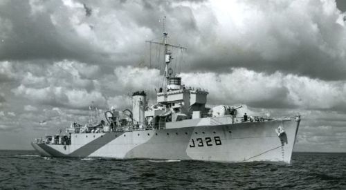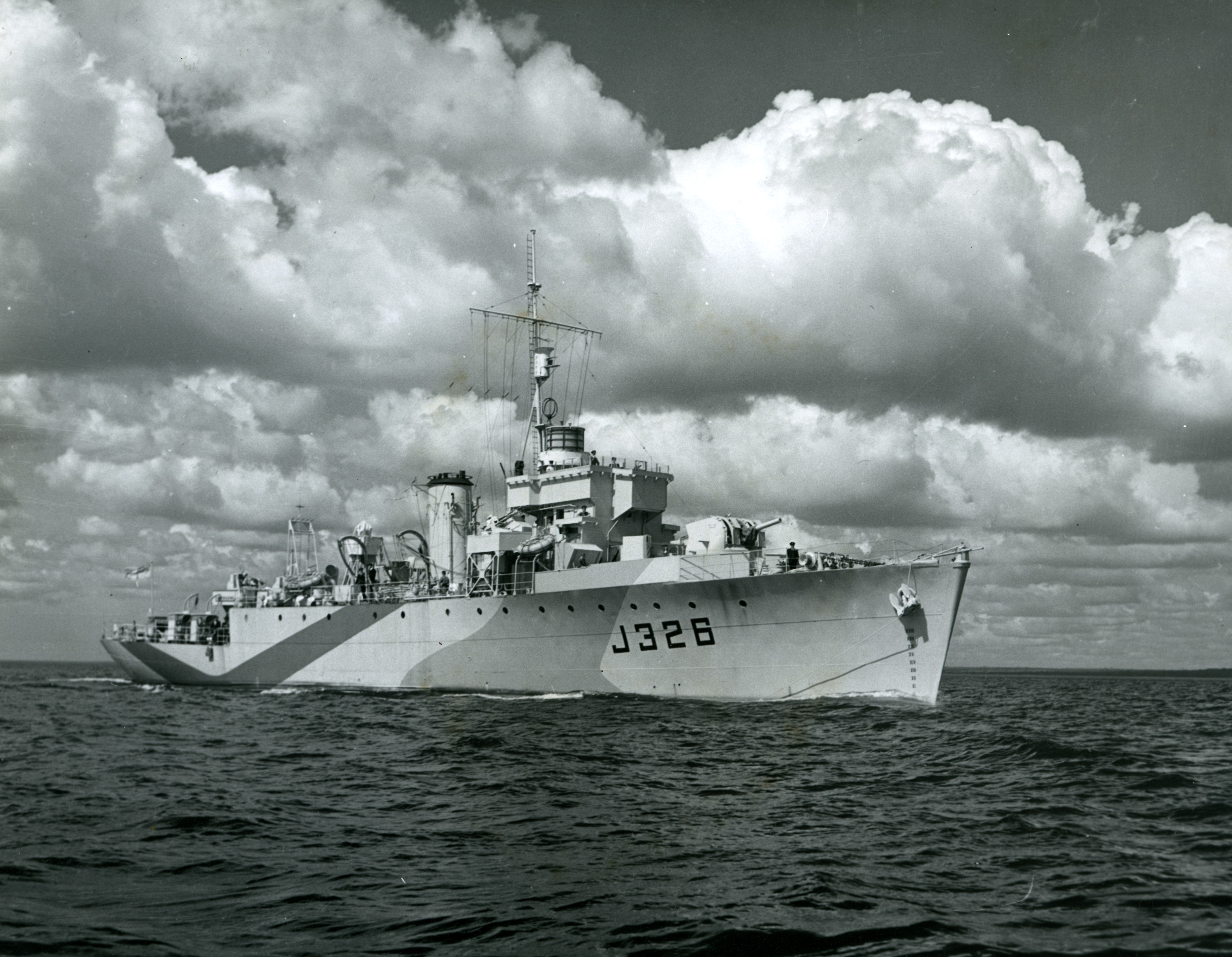 Commissioned at Port Arthur on 17 Aug 1944, KAPUSKASING arrived at Halifax early in Sep 1944 and on 01 Oct 1944 proceeded to Bermuda to work up. She returned to Halifax in mid-Nov 1944 and was assigned as Senior Officer's ship to EG W-1 of Western Escort Force When the force was disbanded in Jun 1945, she was placed temporarily in maintenance reserve at Sydney, then taken to Halifax for refit in Nov 1945. On completion of the refit, she was paid off into reserve on 27 March 1946. In 1949, she was loaned to the Department of Mines and Technical Surveys and converted for hydrographic survey work. Returned to the Navy in 1972 and based in Halifax KAPUSKASING became part of the navy’s auxiliary fleet (pennant number 173), manned by a civilian crew until she was expended as a target on 3 October 1978.