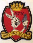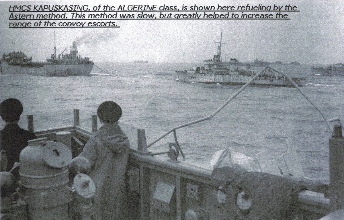 (KAP001) Jacket patch for HMCS KAPUSKASING J326 // From the collection of James (Jimmy) Leary // Courtesy of Gerry Leary (KAP002) HMCS KAPUSKASING conducting a stern fueling with a oil tanker while escorting a convoy // From the collection of Charles Rousseau // Courtesy of Pierre Rousseau (KAP003)