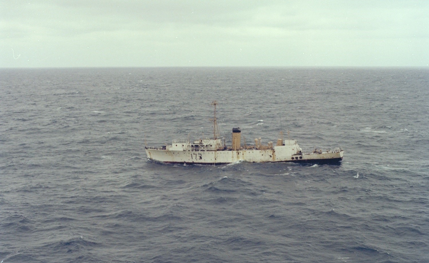 (KAP100) The former HMCS KAPUSKASING being prepared to be towed out to sea as a live-fire target - 03 Oct 1978 // Courtesy of the Assistant Royal Canadian Navy Heritage Officer (KAP101) The former HMCS KAPUSKASING awaiting her fate as a live-fire target - 03 Oct 1978 // Source: Canadian Forces Joint Imaging Centre in Ottawa // Courtesy of Don Smith