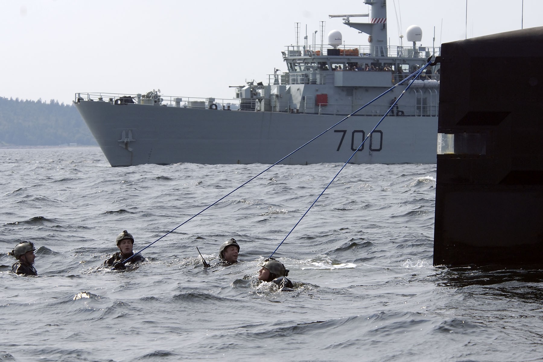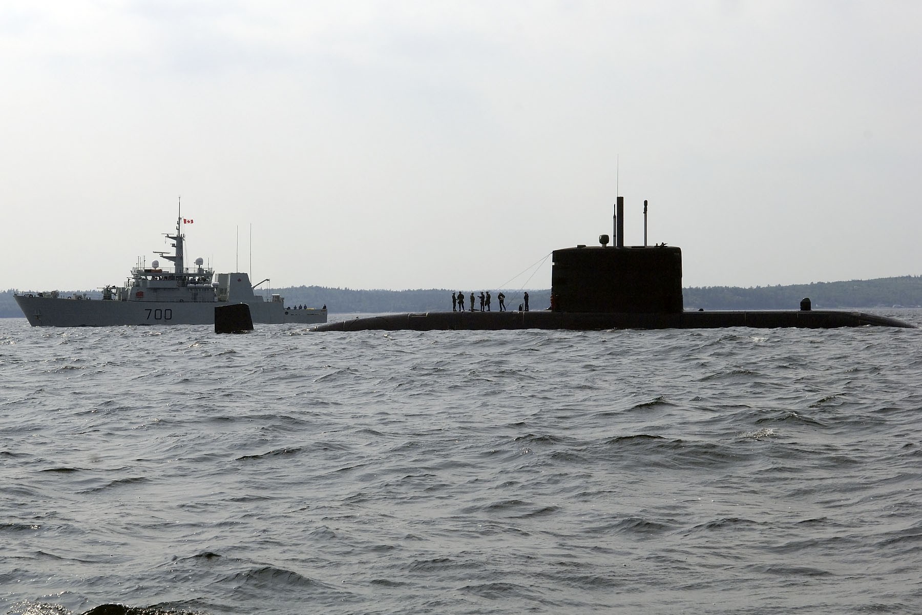 (KNG005 - KNG006) HMCS KINGSTON 700 exercising with HMCS WINDSOR during EX JOINT EXPRESS in St. Margaret's Bay, NS - 11 Jul 2006. Army Pathfinders are standing on the casing of HMCS WINDSOR. Photographer: Cpl Jodie Cavicchi, Formation Imaging Services Halifax Photo # HS2006-0428-04 (KNG007) Ice floats past HMCS Kingston west of Pond Inlet, Nunavut., in Eclipse Sound, on Sunday, Aug. 24, 2014. // The Canadian Press - Adrian Wyld (KNG008) HMCS KINGSTON 700 and HMCS SUMMERSIDE 711 alongside in Portsmouth (UK), May 2019 at the end of the jetty where there carrier HMS QUEEN ELIZABETH is tied up. KINGSTON and SUMMERSIDE are enroute to exercises in the Baltic and are outfitted with their minesweeping gear // Courtesy of Guy Jeffery, Cdr (ret'd) (KNG009) HMCS KINGSTON 700 on the Halifax waterfront for the Evergreen Festival 9-12 Dec 2021 // DND / RCN photo