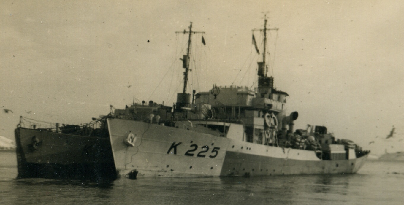 (KIT011) HMCS KITCHENER K225 // Courtesy of Bill Gard. Original source unknown (KIT012) HMCS KITCHENER K225 approaching HMCS MATAPEDIA K112 at sea // The Frisken photo collection
