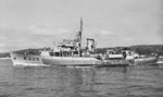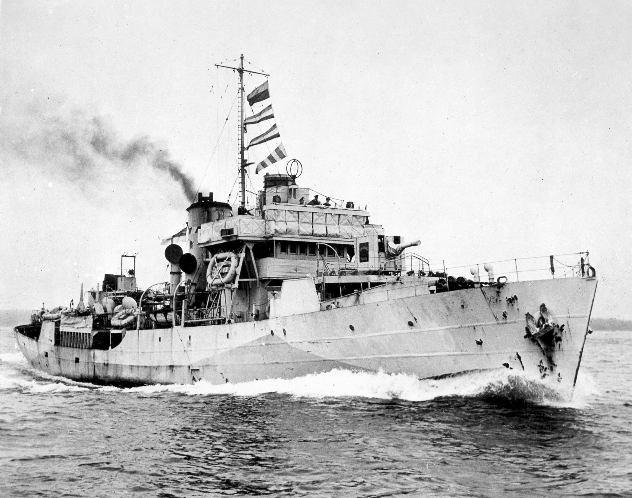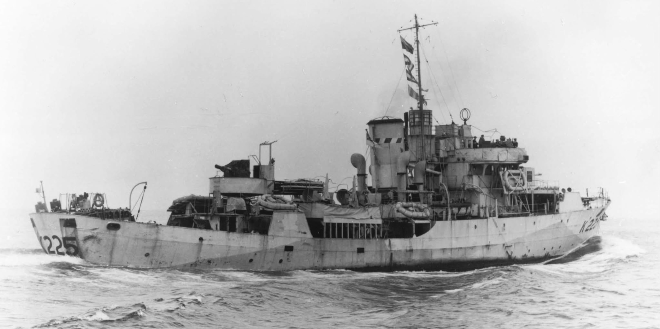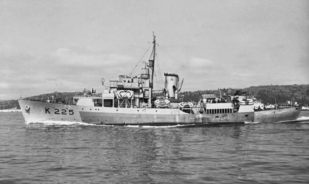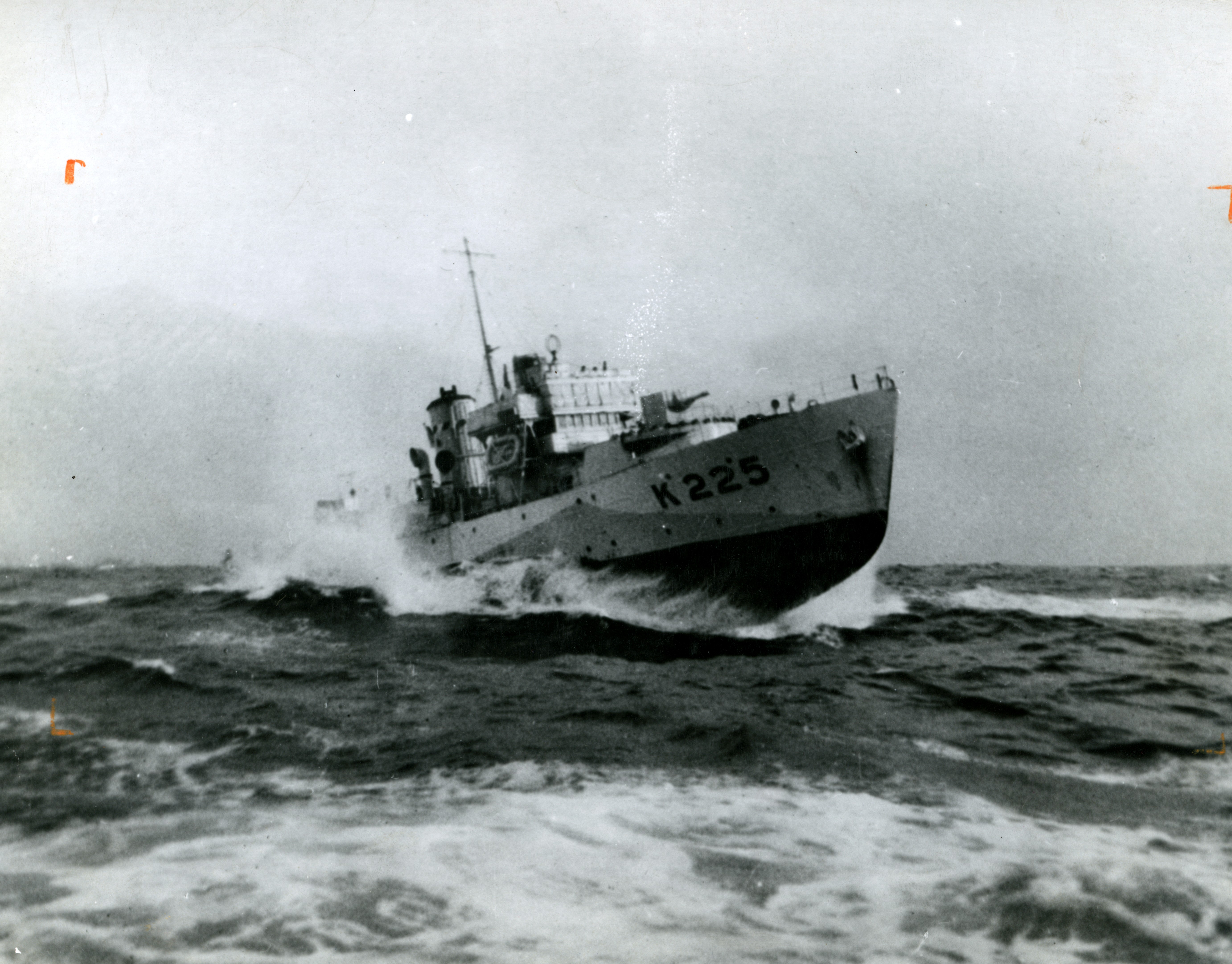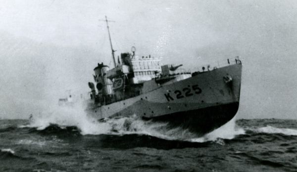 Laid down as HMCS Vancouver, she was renamed HMCS KITCHENER prior to commissioning. She was commissioned at Quebec City on 18 June 1942. KITCHENER arrived at Halifax on 16 Jul 1942 and carried out six weeks' workups at Pictou before briefly joining WLEF in Sep 1942. It may have been during this unusually long workup that she starred in the film Corvette K-225 with Randolph Scott. In Oct 1942 she was assigned to duties in connection with Operation "Torch," and arrived at Londonderry on 03 Nov 1942. For the next four and one-half months she escorted U.K.-Mediterranean convoys, returning to Halifax on 19 Apr 1943, with convoy ONS.2. In May 1943 she joined Western Support Force but in Jun 1943 transferred to EG C-5, MOEF, and during the following four months made three round trips to Londonderry. A major refit, commenced in Oct 1943 at Liverpool, N.S., was completed on 28 Jan 1944, followed by two weeks' working-up in Bermuda. In mid-Apr 1944 she arrived at Londonderry, where she was assigned to invasion duties with Western Approaches Command, based at Milford Haven. She arrived off the beaches on D-Day escorting a group of landing craft. From Aug 1944 until the end of the war she served with EG 41, Plymouth, returning home late in May 1945, to be paid off at Sorel 11 Jul 1945. She was broken up at Hamilton in 1949.